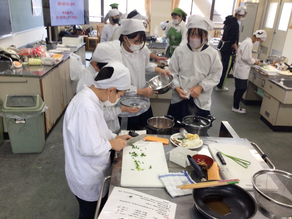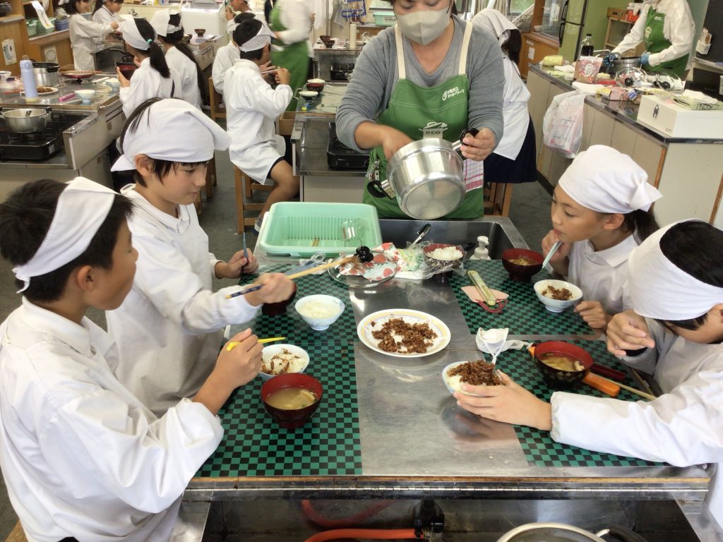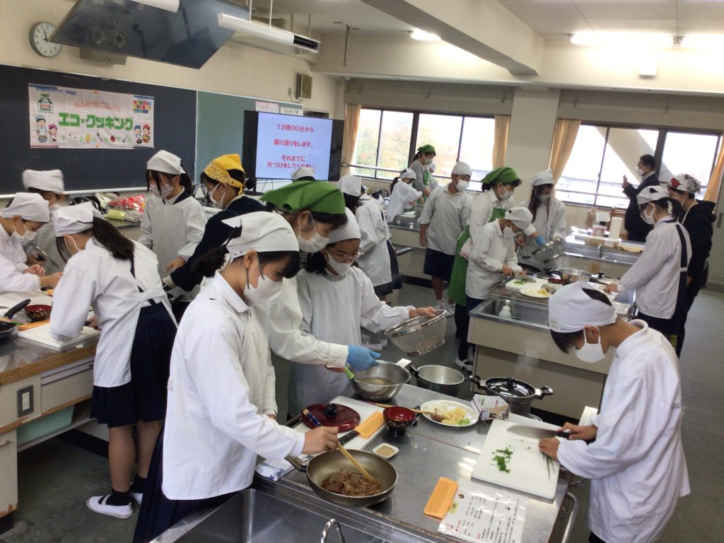 11月13日(木)に、大阪ガスネットワークの3名の講師による「エコクッキングの出前授業」を受けました。