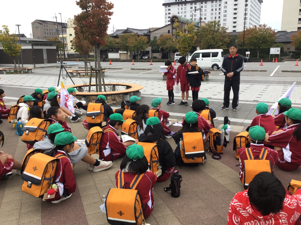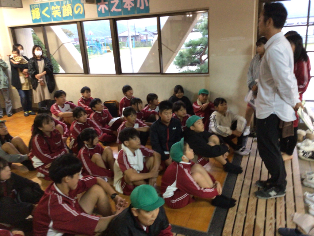 6年生33名が、豊公園から木之本小学校までの約21キロを、途中雨が降る中、みんなで励まし合いな