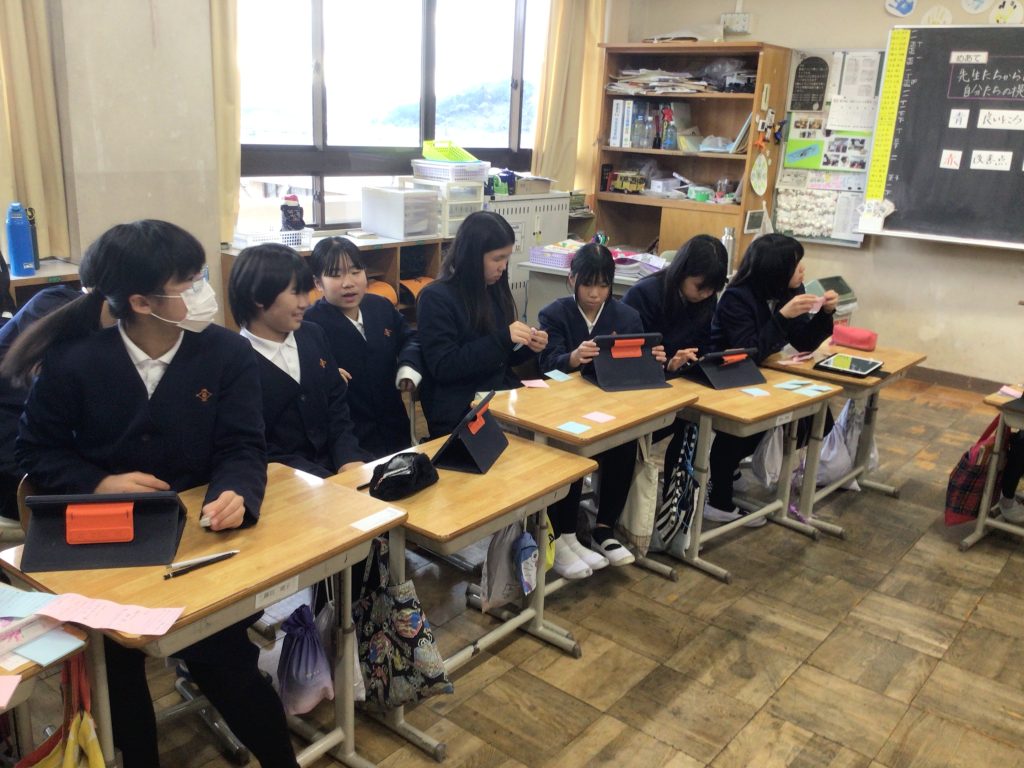 今日の授業では、身近な大人の教師のアドバイスを聞き、提案内容の改善を図る活動をしました。