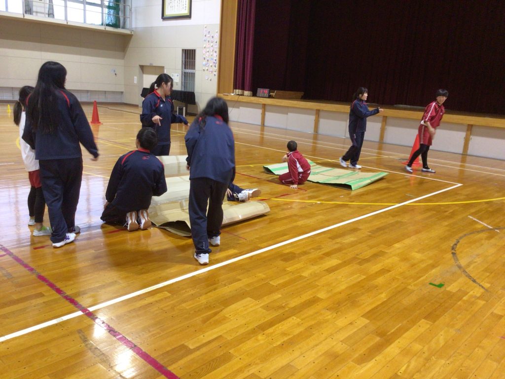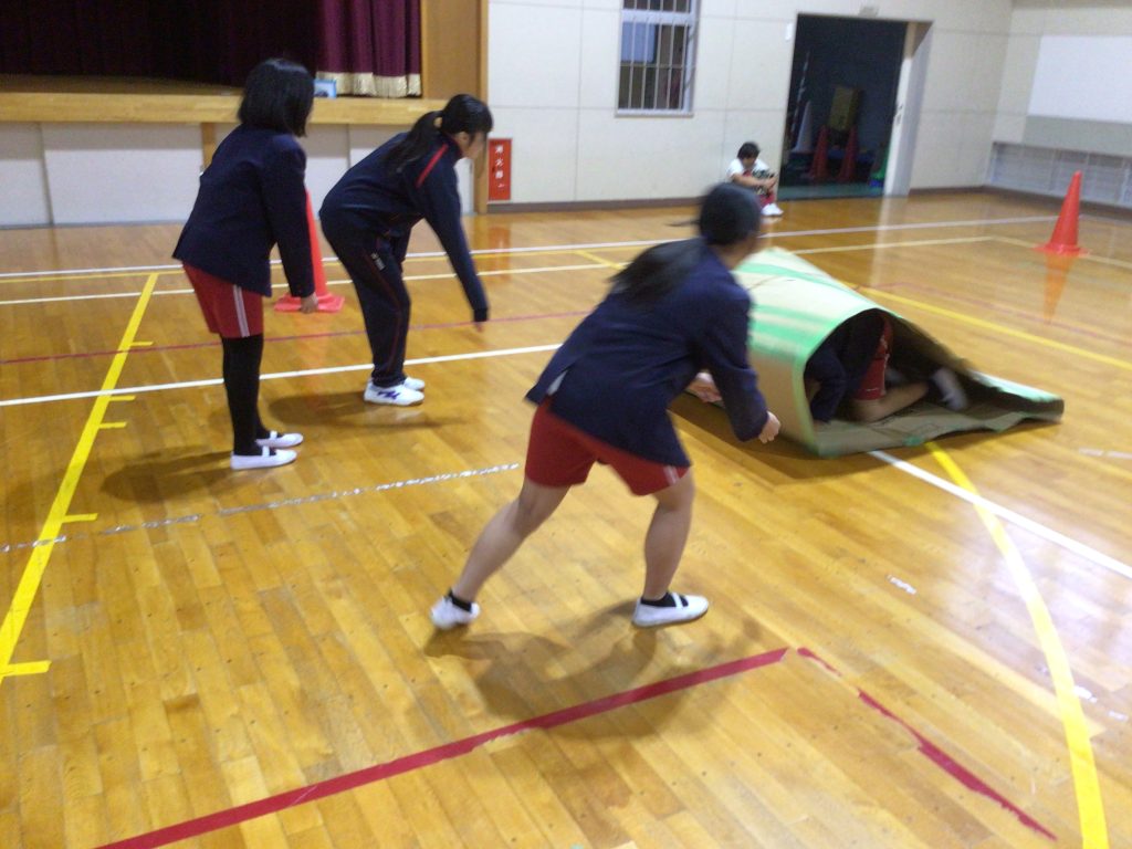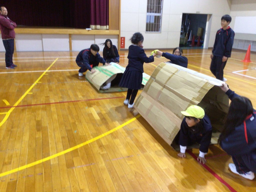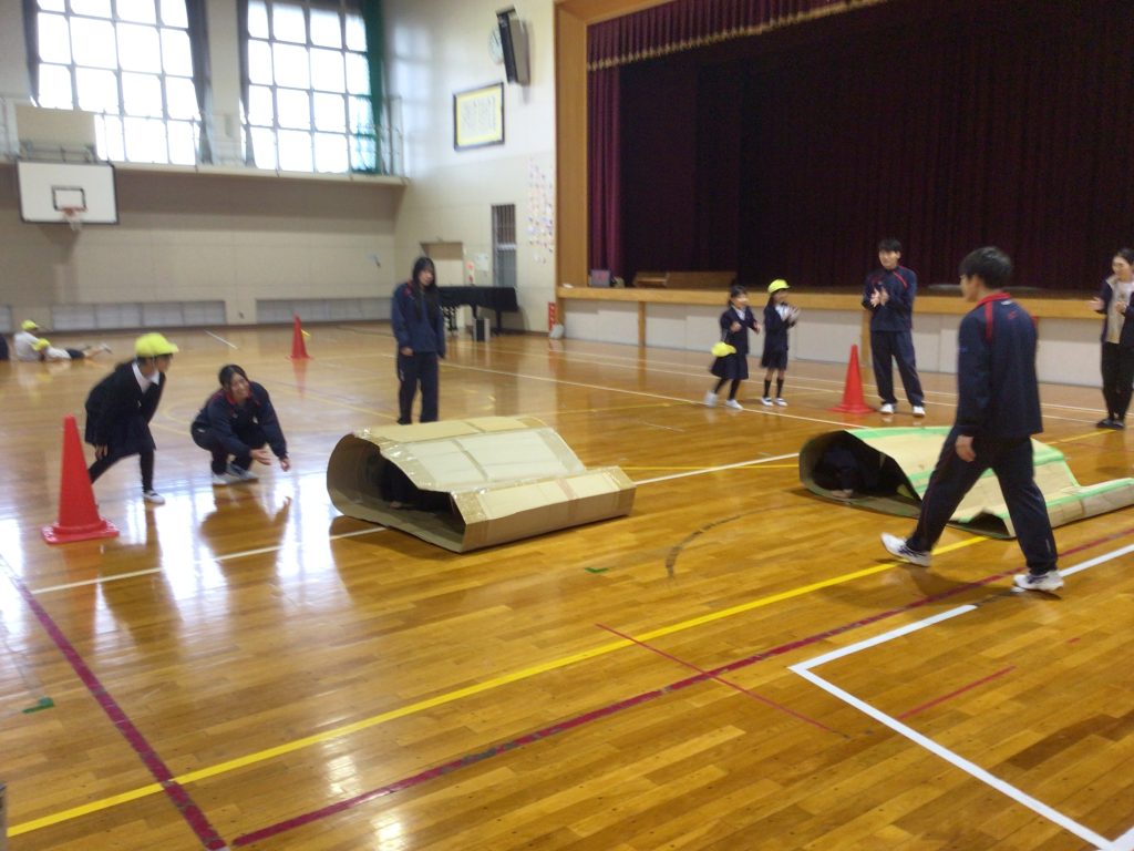 3年生は5校時、6年生は6校時に、防災スポーツという内容で、3つのコースに分かれて、防災についての学習をしました。
