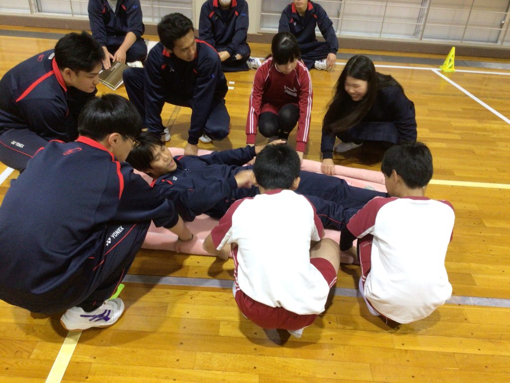 本日、伊香高校スポーツ健康コースの3年生のみなさんによる防災学習を実施しました。