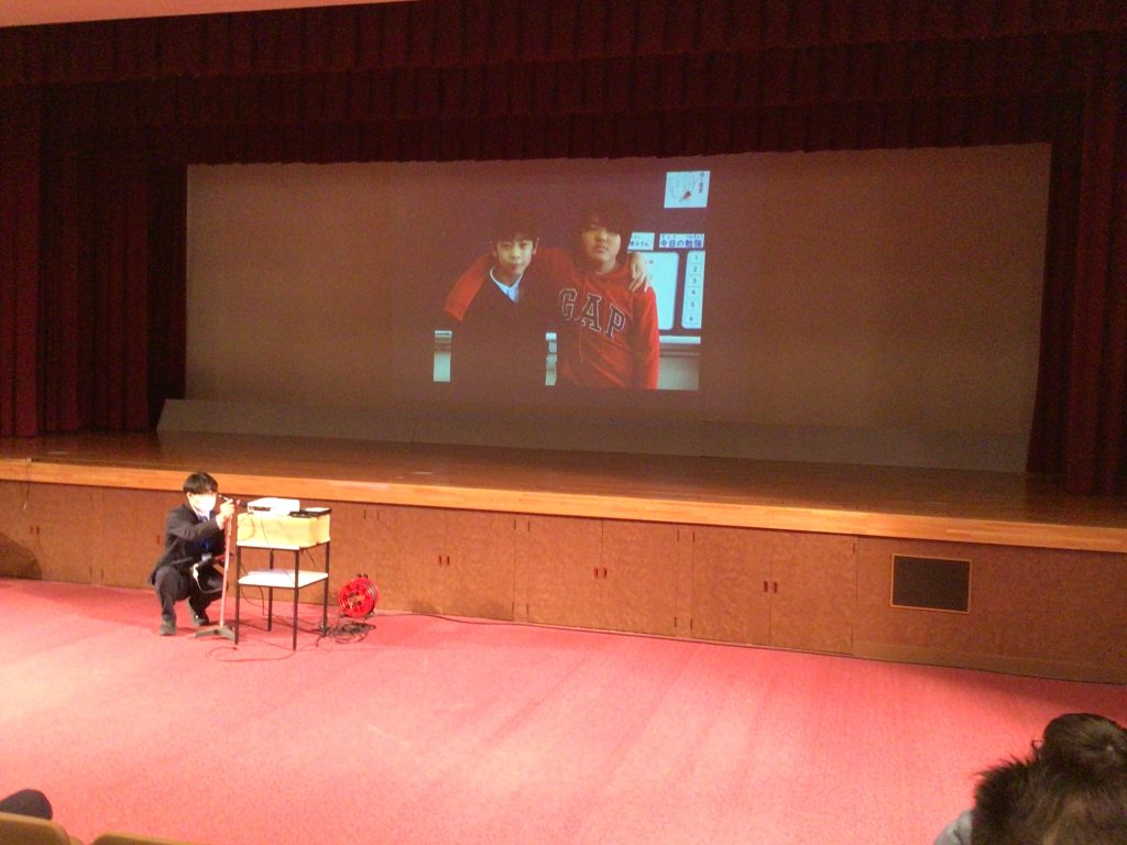 木之本小学校は高時小学校と計4人で、ムービー「自分紹介」と題し、学校紹介と自己紹介、今年頑張ったことやできるようになったこと、また、みんなに紹介したいことなどを発表しました。