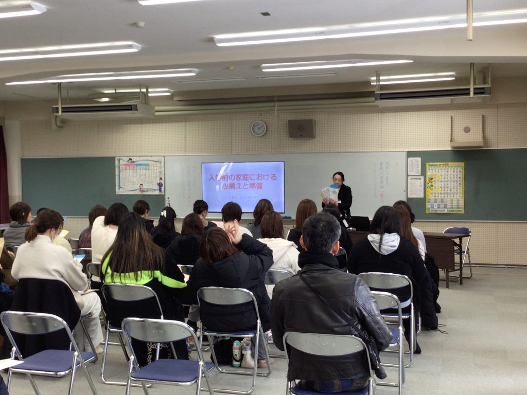 新入児入学説明会では、教務の方から入学準備物や学校生活について設営をしました。