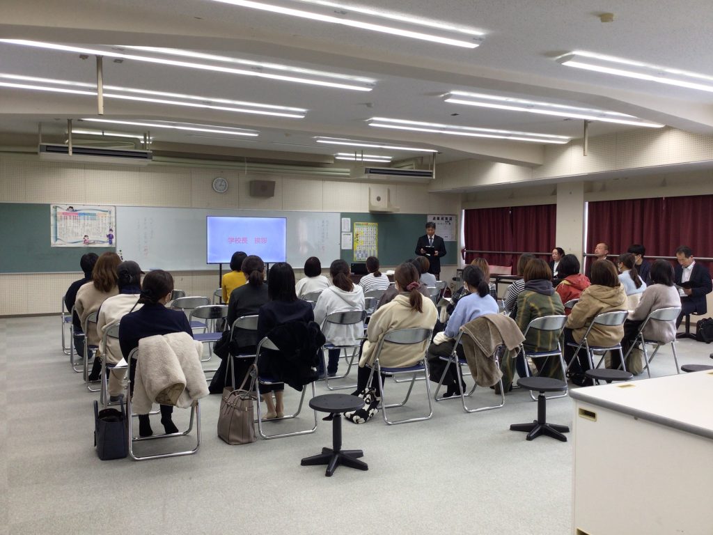 本日、午後13時50分から「新入児入学説明会」と「統合に向けての学校説明会」を開催しました。