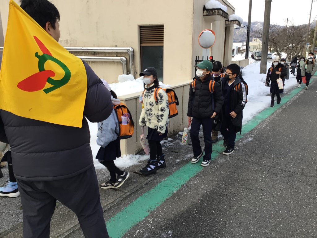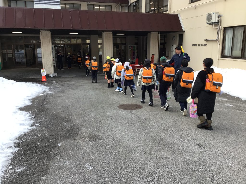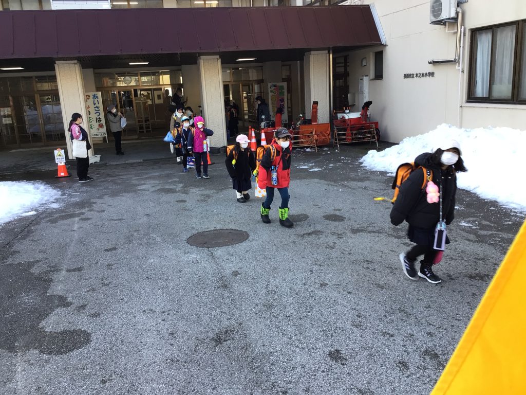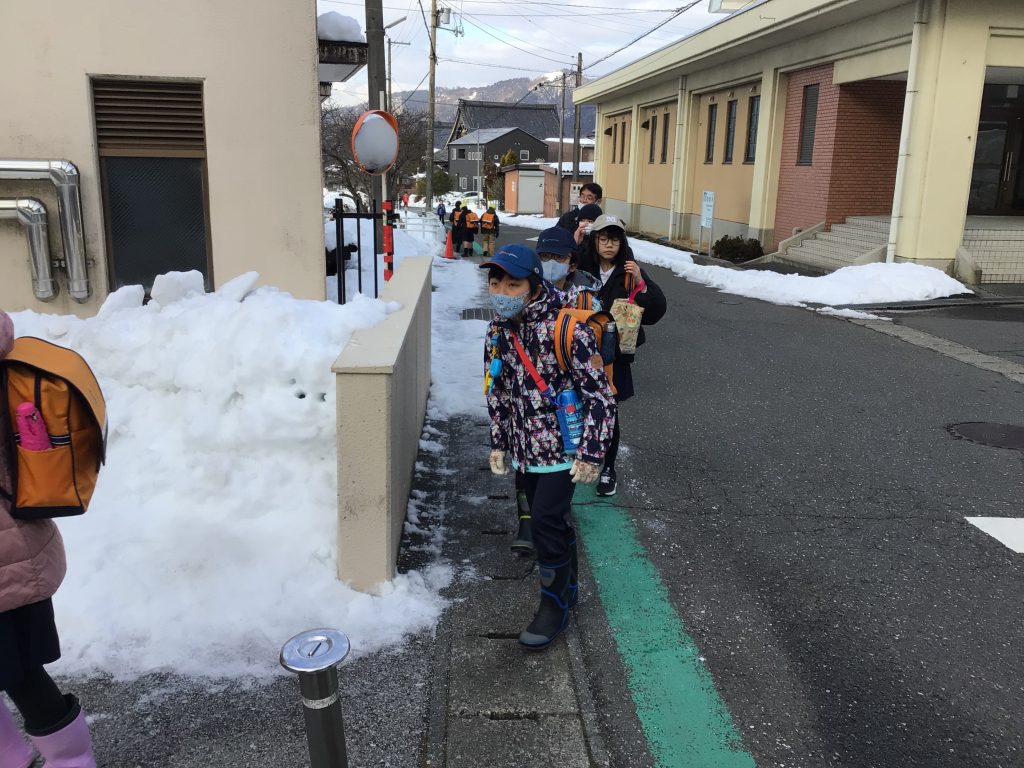 本日、伊香具小学校との統合に向けての通学シミュレーション(登校時)を行いました。
