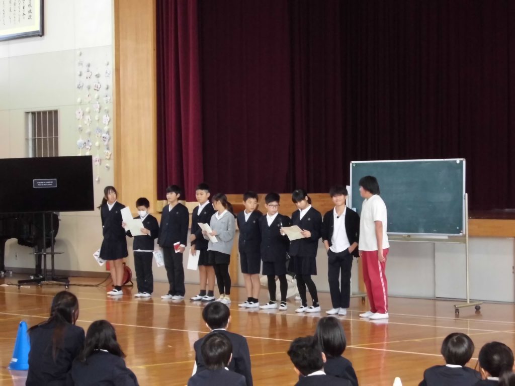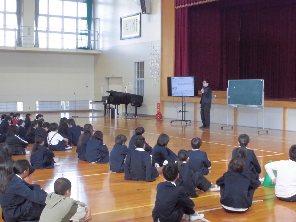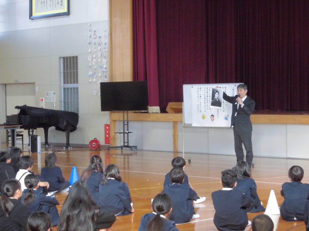 寒い中でしたが、子どもたちはしっかりと聞く態度ができ、中身の濃い全校集会になりました。