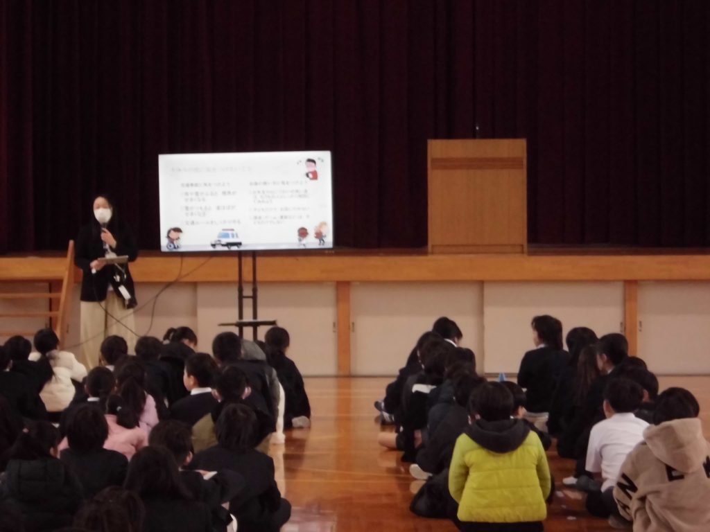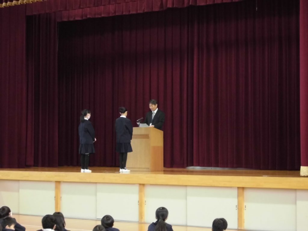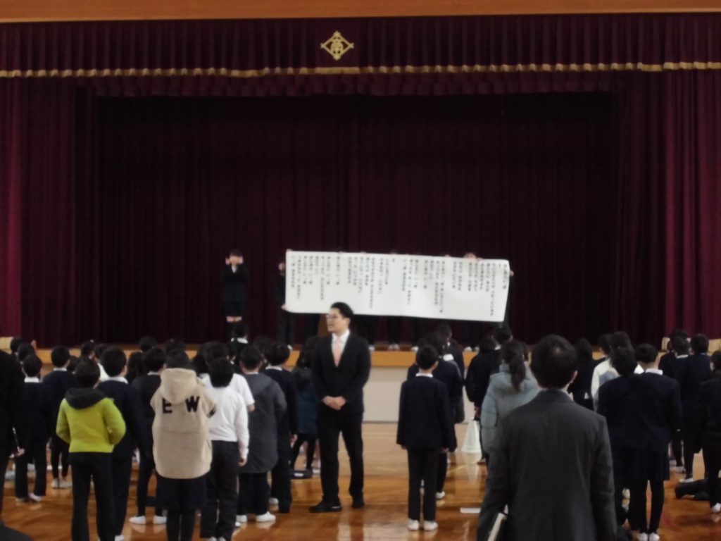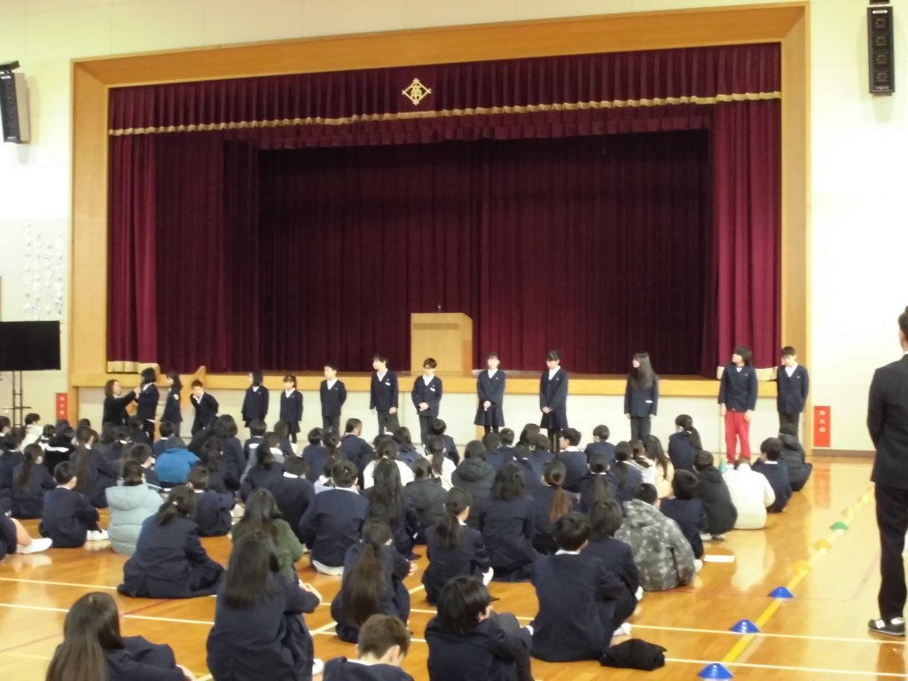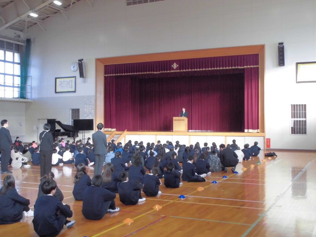 寒い中でしたが、子どもたちはしっかりとした態度で聞くことができ、たたえる場面では、惜しみない拍手を送っていて、とてもすばらしかったです。